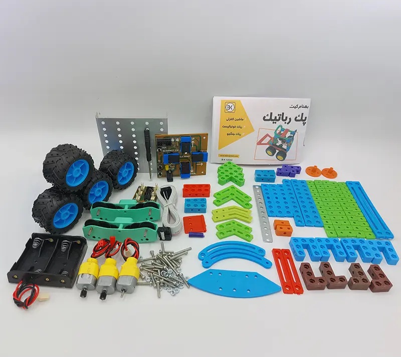 برد دسته کنترلر ربات به صورت کامل مونتاژ و تست شده است و خریدار می بایست تنها قطعات مکانیکی را سرهم نماید.در این روبات علاوه بر کنترل کامل بر حرکت چرخ های ربات (عقب، جلو، چپ و راست) از طریق دسته کنترل مخصوص،سه خروجی الکتریکی دیگر تحت فرمان کاربر می باشند که توسط کلیدهای مخصوص روی دسته قابل کنترل هستند.این ربات قابلیت اضافه کردن موتور جهت سلاح برای ربات جنگجو و یا شوت کننده و پاس دهنده توپ جهت ربات فوتبالیست را دارا می باشد.