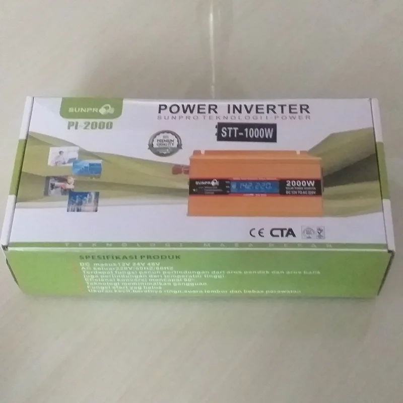 مبدل برق خودرو 1000 وات برند سان پرو sunpro محصول چین برای تبدیل ولتاژ 12 ولت خودرو به برق شهر 220 ولت با فرکانس 50 هرتز میباشد. قابلیت تامین 2000 وات به صورت لحظهای و تامین 1000 وات در حالت استفاده دایمی. طراحی منحصر به فرد با بدنه فلزی و فن اتوماتیک توربو برای بهبود خنکسازی و افزایش راندمان،مجهز به ۲نمایشگر ولتاژ ورودی و خروجی، مجهز به کابل ارتباطی باتری، مجهز به 4 پورت USB مناسب هر دستگاه،دارای ۳ پریز برق خروجی مجهز به انواع حفاظتها شامل خفاظت اضافه بار، اتصال کوتاه، اضافه حرارت ، ولتاژ بالا و ولتاژ پایین باتری. مناسب برای سیستمهای روشنایی با هر نوع لامپ، سیستمهای گرمایشی، اتو، پنکه، ابزارآلات صنعتی، تلویزیونهای LCD و LED ، لپتاپ، رایانه شخصی، موبایل و تبلت.